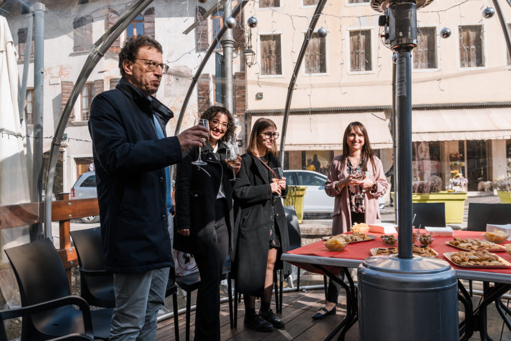 Dopo il taglio del nastro, gli ospiti hanno festeggiato assieme con un piccolo rinfresco organizzato per celebrare l’inizio di questa nuova avventura. Un’occasione semplice ma significativa per condividere questo traguardo con il team HL Immobiliare, insieme a clienti, partner, cittadini e altri negozianti della zona che si sono fermati a salutare e brindare alla nuova apertura.