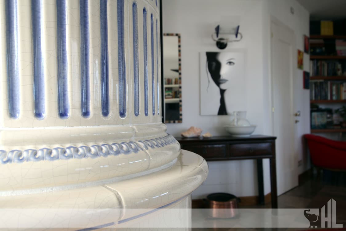 Ca’ da Monte, realizzata nel 1976 e firmata dall’Architetto Adriano Campioni, allievo di Carlo Scarpa, è molto più di una villa: è un manifesto di stile e visione progettuale, un luogo in cui l’arte del costruire si fonde con la natura circostante. I progetti di Campioni, si distinguono da sempre per la profonda attenzione al rapporto tra forma, struttura, materiale e sito: ogni elemento è pensato per dialogare con il contesto, generando spazi di grande forza espressiva. Ne è un esempio la linea obliqua del caminetto centrale, vera e propria "lama" scultorea e firma distintiva di Campioni, che attraversa e definisce l’anima della casa, rendendola assolutamente iconica.