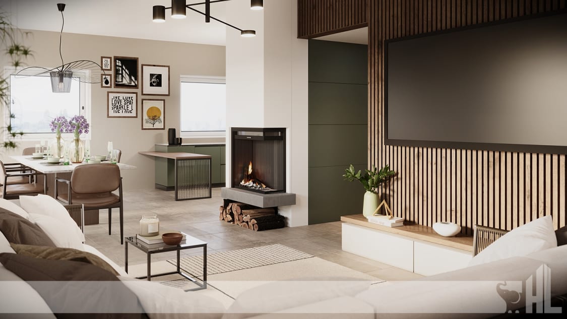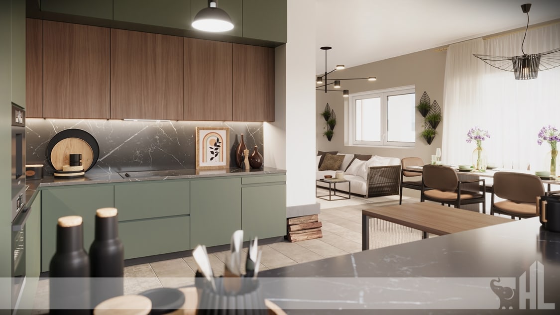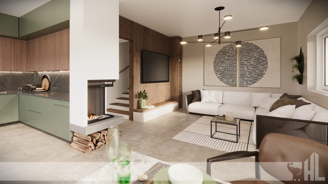 L'ospite accede all'abitazione attraverso un piccolo atrio e da qui, ad un'ampia zona living open-space con soggiorno, sala da pranzo e spaziosa cucina a vista. Sempre su questo piano troviamo poi un bagno e un comodo locale ad uso lavanderia.