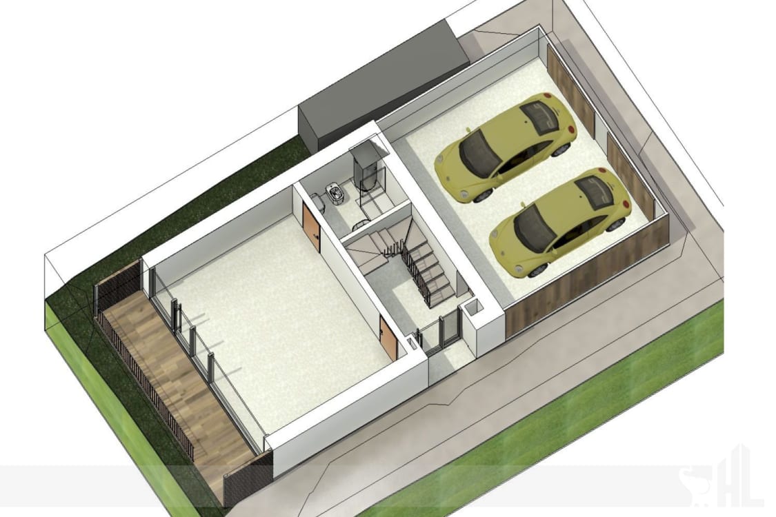 Il piano terra potrà essere così composto: un garage di comode dimensioni, un bagno di servizio ed un locale perfetto come spazio di lavoro, studio o stanza hobby.