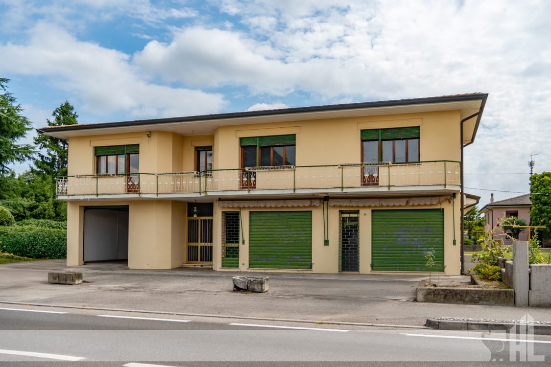 La casa si distingue per la sua struttura articolata e le ampie dimensioni, che offrono numerose possibilità di utilizzo. Disposta su due livelli, la proprietà combina spazi residenziali e commerciali in un unico edificio funzionale. Al piano terra troviamo un negozio con affaccio diretto sulla strada, ideale per chi desidera visibilità per la propria attività, un ampio magazzino, che si estende anche al piano interrato, un vano accessorio e un garage doppio collegato internamente a più locali.