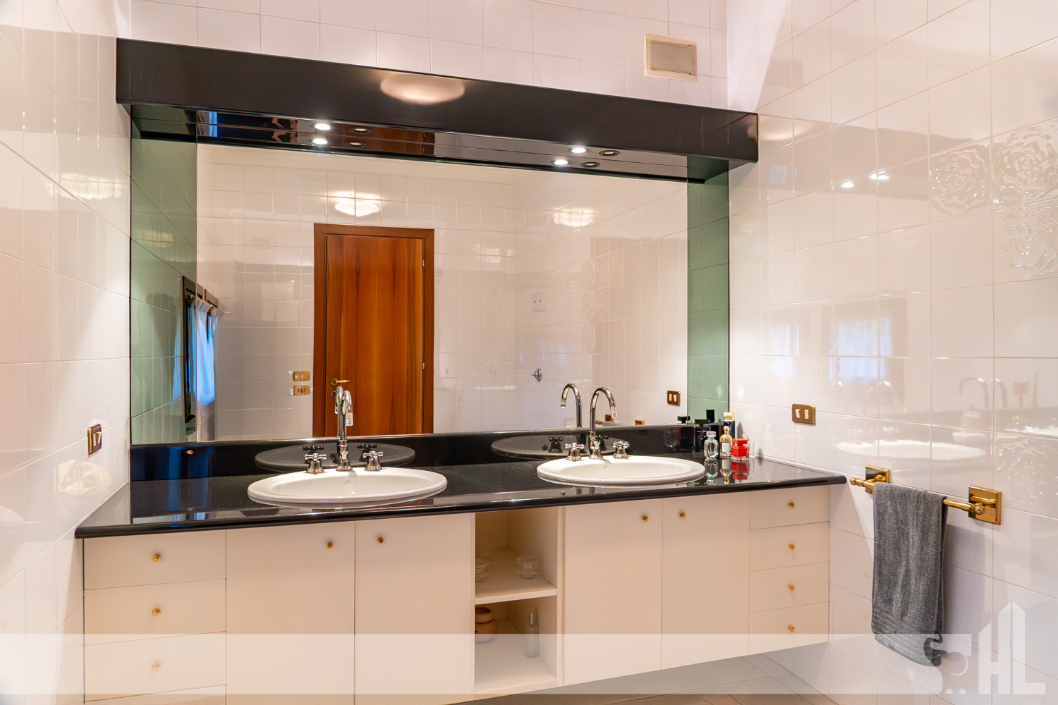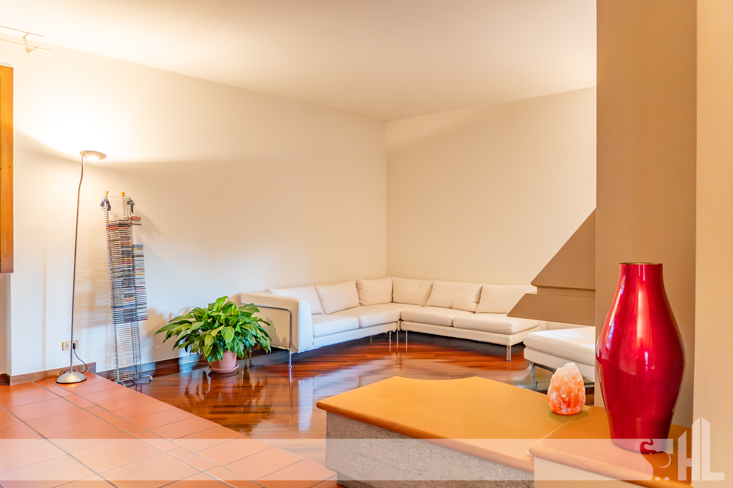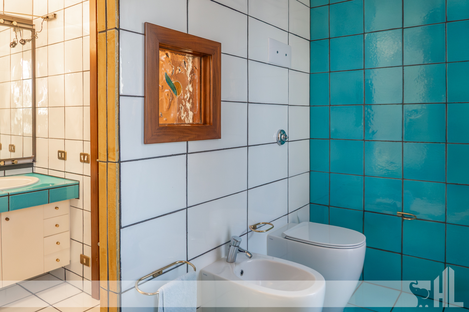 Esternamente, il giardino di oltre 1.200 mq, i portici vivibili e la struttura dell’immobile creano un insieme armonioso che amplifica la sensazione di benessere.