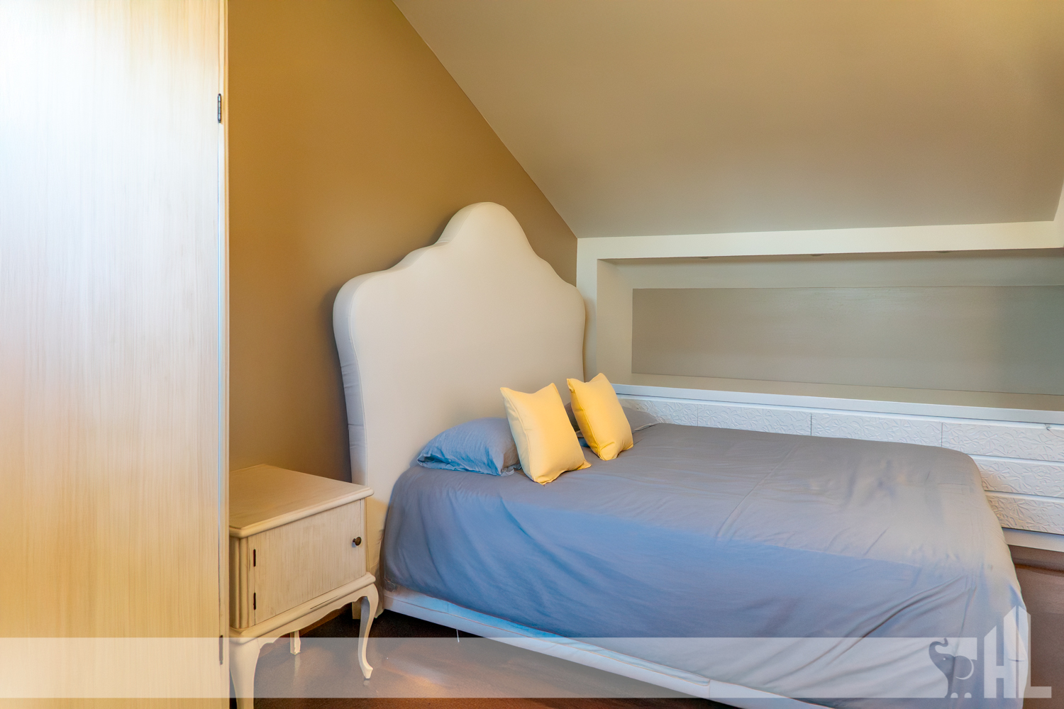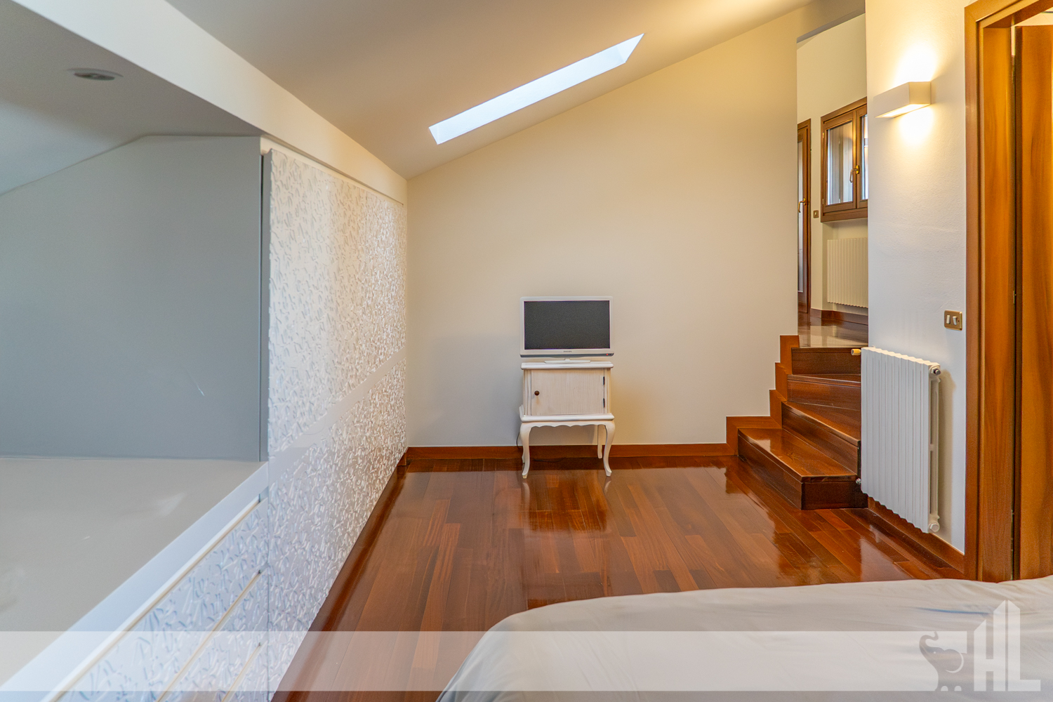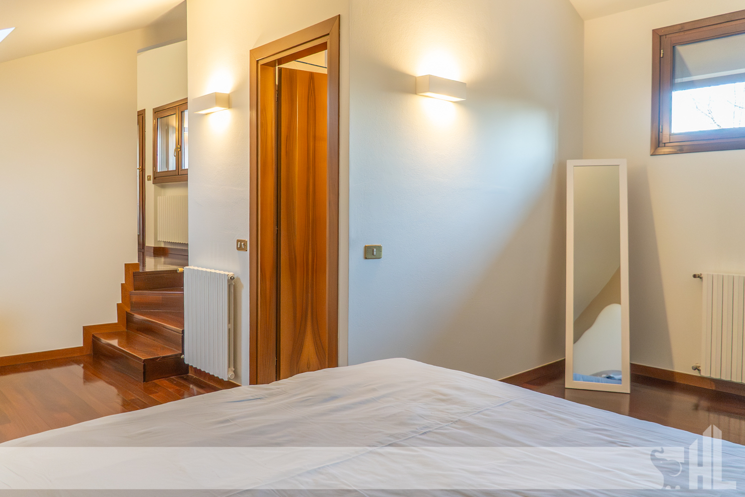 Salendo al piano primo, la zona notte, caratterizzata da pavimenti in legno che conferiscono eleganza e comfort, offre quattro camere da letto. Di queste, la camera padronale, posta nella suggestiva zona mansardata, garantisce privacy, comfort e bagno en suite. Vi è inoltre un ulteriore bagno di servizio alle altre stanze e un ambiente, attualmente adattato ad elegante studio con accesso diretto a un terrazzo.