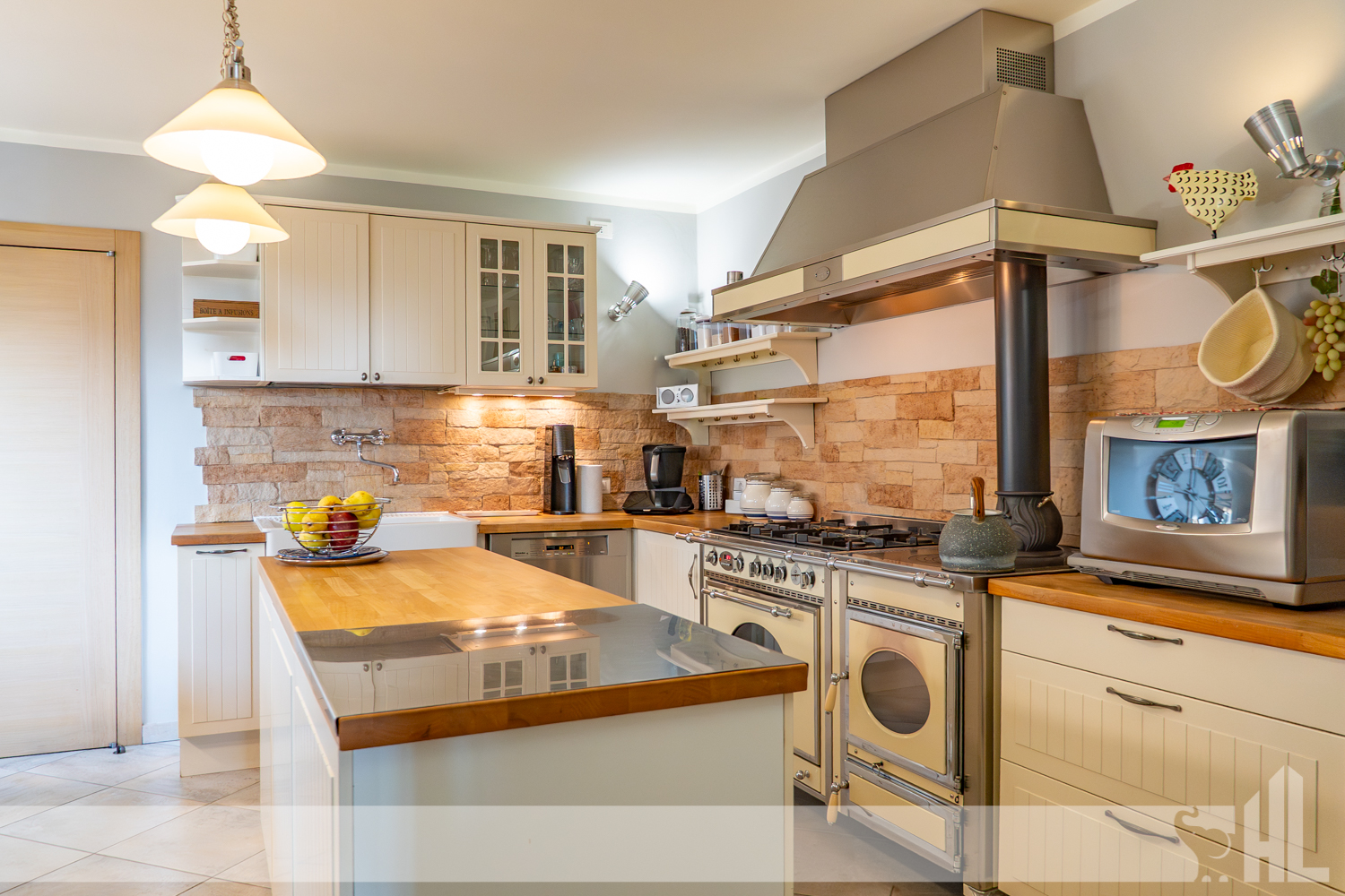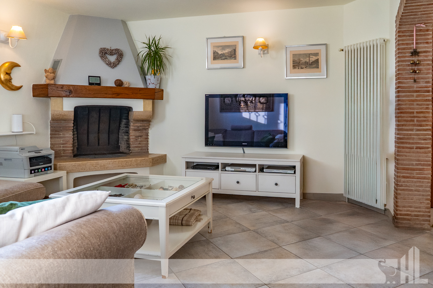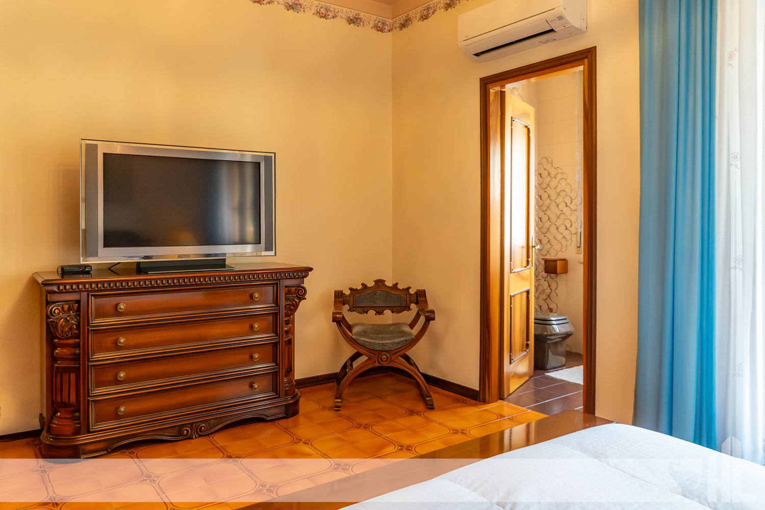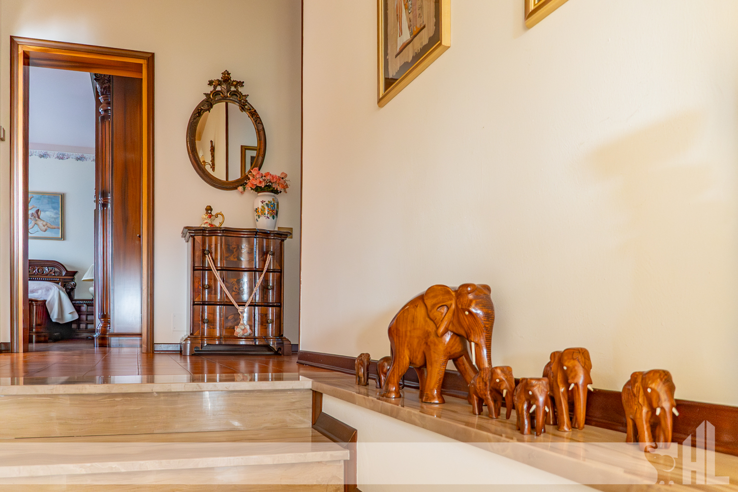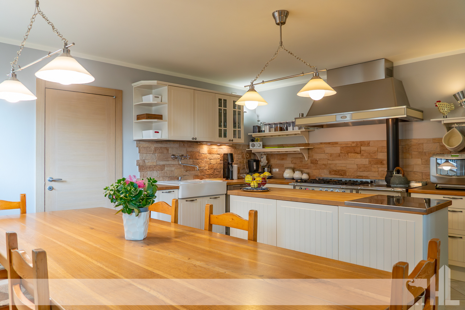 La villa si sviluppa interamente su due livelli, offrendo metrature generose e una distribuzione degli spazi funzionale e raffinata. Al piano rialzato si apre l’abitazione principale, l’ingresso accoglie con un ambiente ampio e pratico che conduce alla cucina spaziosa, collegata al soggiorno. Qui, le grandi vetrate e la luce naturale creano un’atmosfera calda e conviviale, il vero cuore della casa. La zona notte comprende un bagno finestrato e tre camere da letto di ottime dimensioni, di cui una con bagno en suite.
