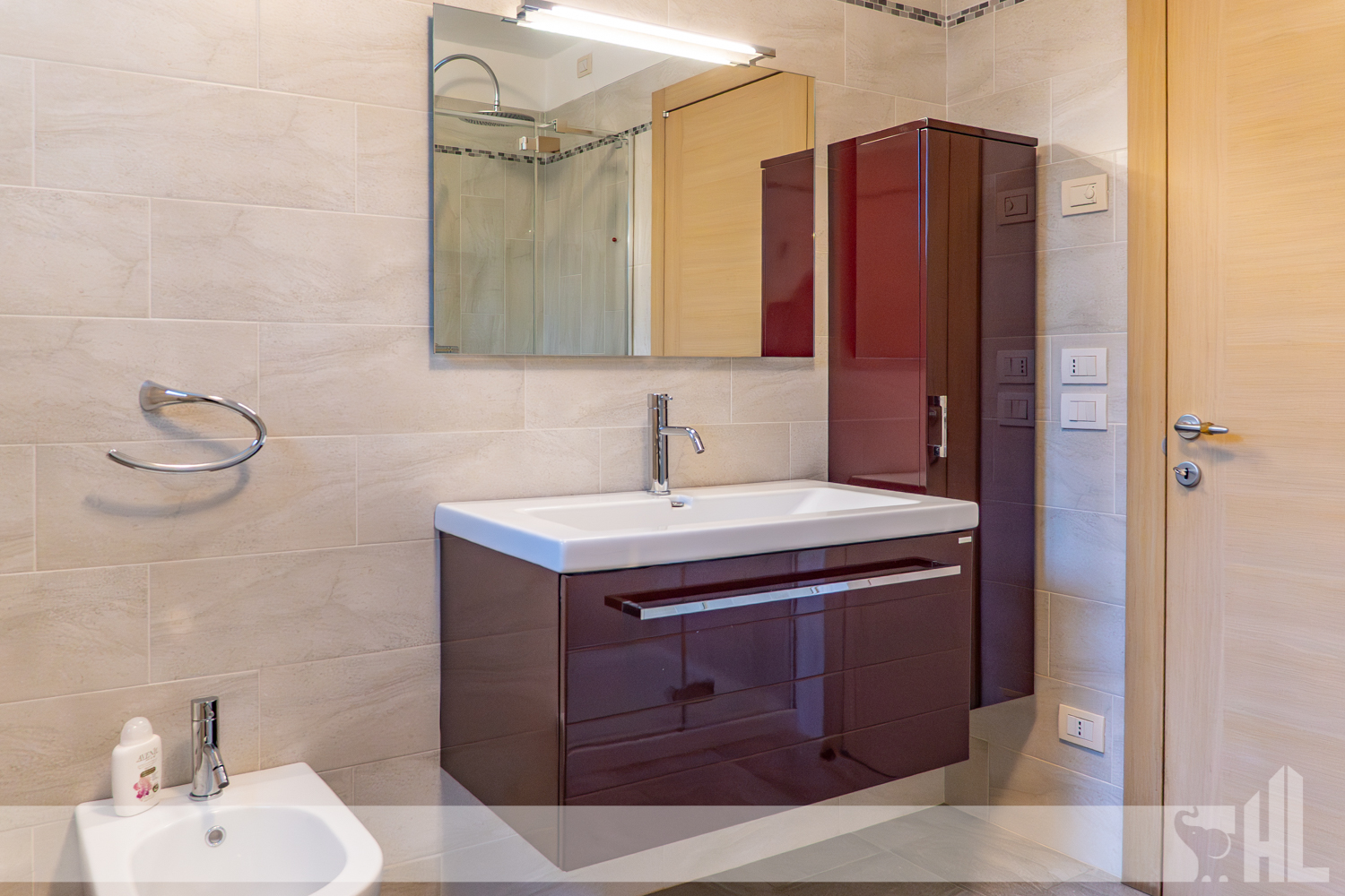 Scendendo al piano seminterrato troviamo un ampio garage doppio, diversi locali ad uso cantina, ideali come spazi di stoccaggio, e una taverna moderna, attrezzata e pronta per essere vissuta come area relax o convivialità. I due livelli sono collegati internamente, ma godono anche di accessi indipendenti, elemento che aggiunge praticità e versatilità.